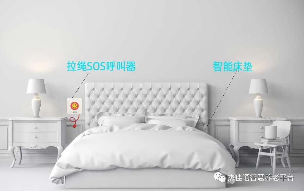 1、床頭安裝拉繩SOS呼叫器,當(dāng)老人在床上感到不舒適時(shí),可以通過拉繩或者按下呼叫器按鈕,把求助信息發(fā)送到值班中心或者子女手機(jī)上,值班中心電話會(huì)響起,同時(shí)值班中心大屏上即時(shí)顯示老人的信息,子女手機(jī)上也同時(shí)受到老人異常信息的推送。