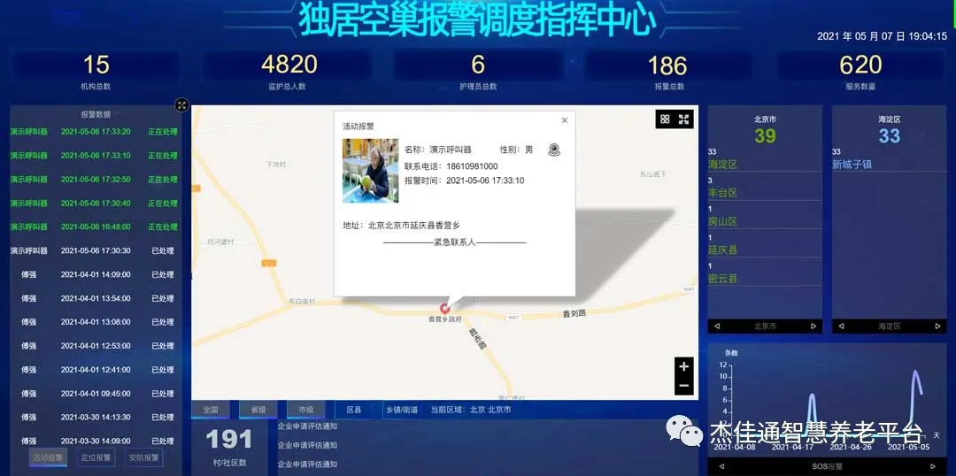 1、在茶幾上、過道、餐桌旁、廚房內(nèi)粘貼SOS呼叫器或者拉繩SOS呼叫器按鈕。當(dāng)老人出現(xiàn)異常時(shí),老人隨手拍一下,即發(fā)出救助呼叫信息,智慧調(diào)度值班中心大屏上即時(shí)彈出老人的詳細(xì)信息;子女手機(jī)上也即時(shí)提示老人異常信息。