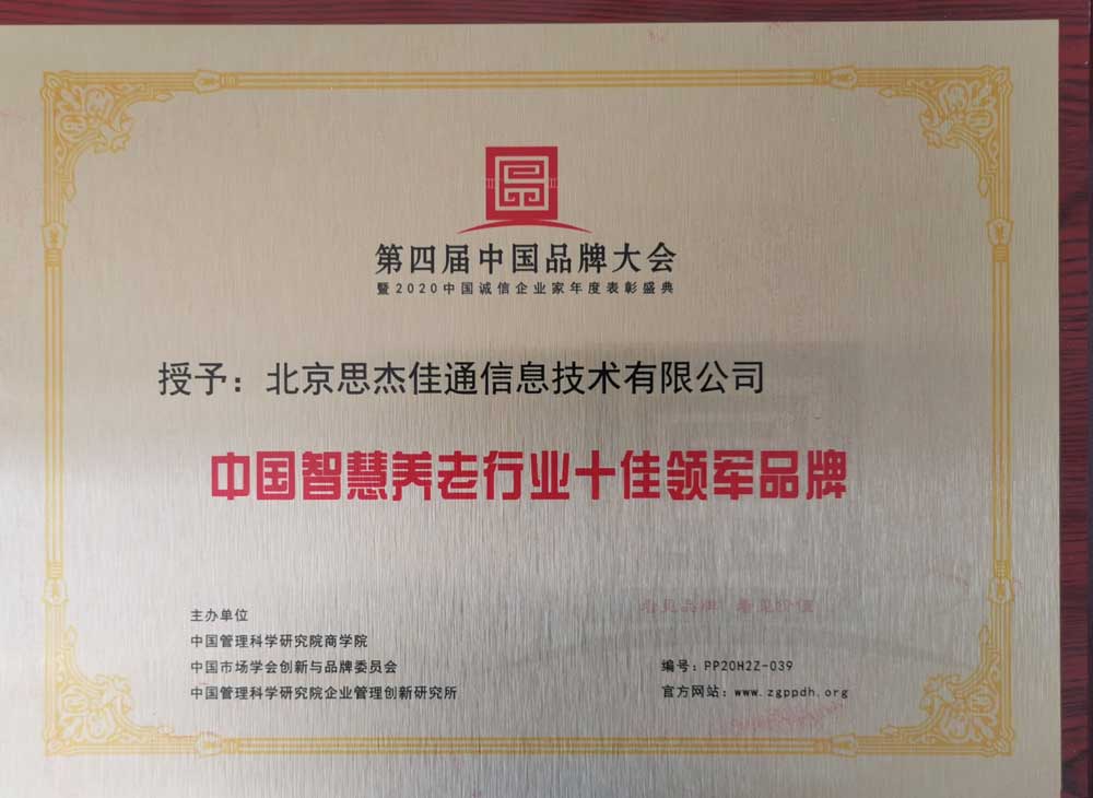 授予公司 中國“智慧養老”科技創新優秀供應商稱
