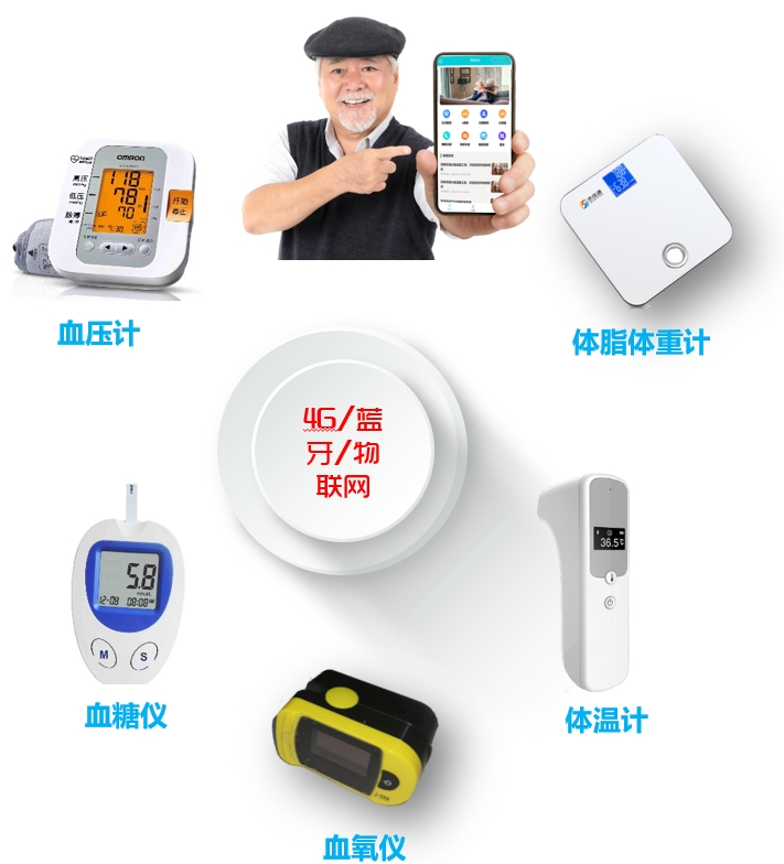 1)血壓計、血氧計、血糖儀、體脂秤、體溫計.....;2)健康數(shù)據(jù)查看;3)一鍵呼叫養(yǎng)老服務(wù)中心;4)一鍵提交養(yǎng)老需求(生活幫助、訂餐、購物、助醫(yī));5)適合居家/社區(qū)養(yǎng)老的老人。
